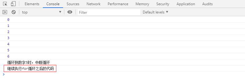console.log("循环中断后,继续执行for循环之后的代码"); // 跳出循环后,继续执行后面的语句