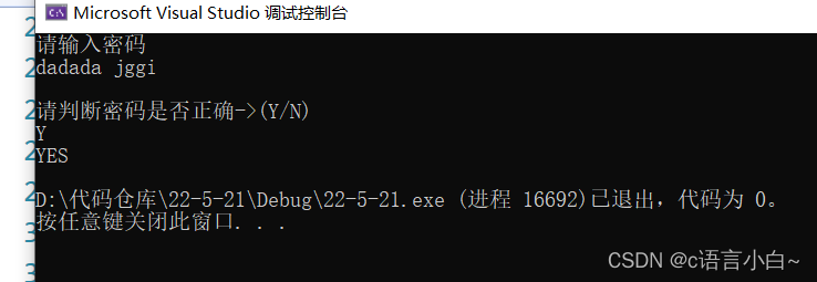 //getchar();//让他把n拿走,那么后面的getchar就获取的是我们判断密码的YN.