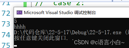 此时我们输入的5,但是我们的case语句中并没有case5,所以他就执行了我们的default语句.