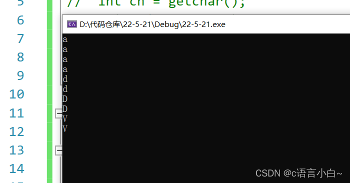 int ch = getchar();//获取一个字符:从键盘中获取