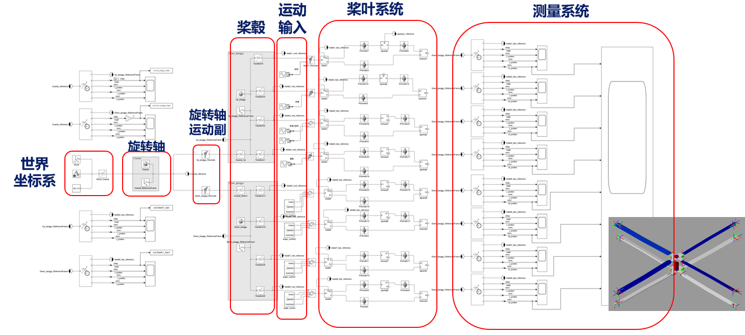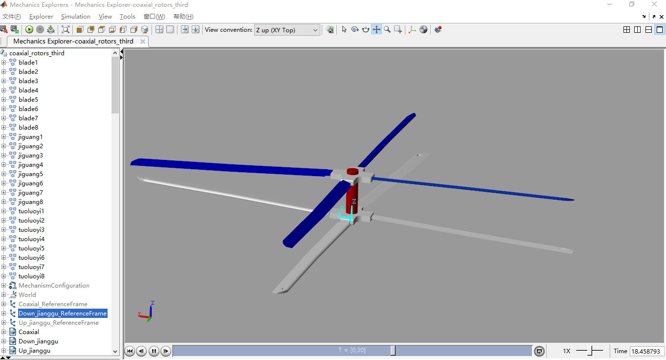 这是一个共轴旋翼的运动仿真,也是意外的发现simlink竟然可以做那么多有趣的事。碰巧研究了一下simscape_multibody。