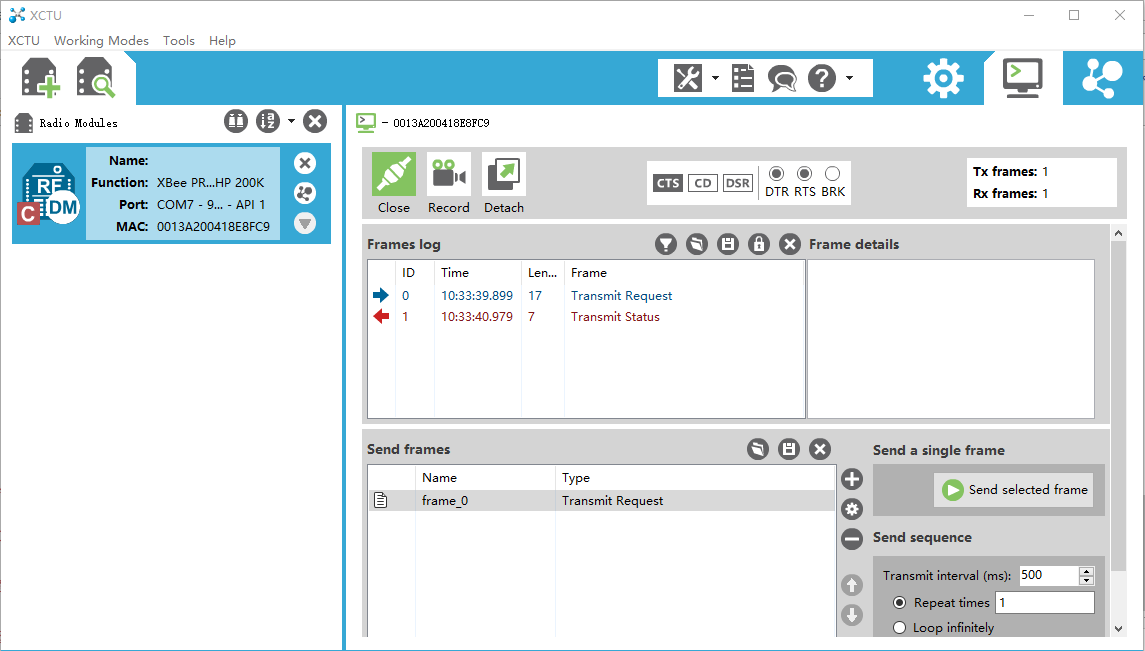 - 软硬件准备:1. 两个底板;2. 两只900HP模块;3. XCTU软件。将两个带900HP模块的USB底板插到电脑,会虚拟出两个串口。通过XCTU软件,分别读取两个模块参数。