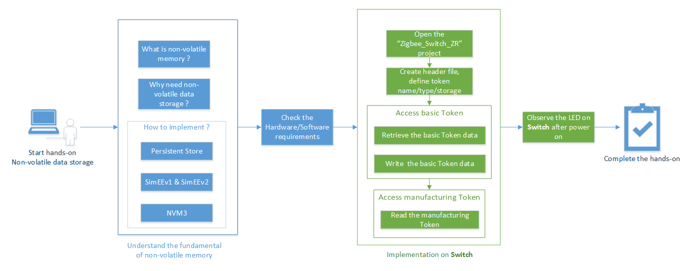 - 通过本实验课程,您将学习非易失性数据存储的基础知识,Silicon Labs提供的数据存储方案,以及如何使用Tokens来访问非易失性数据存储对象。