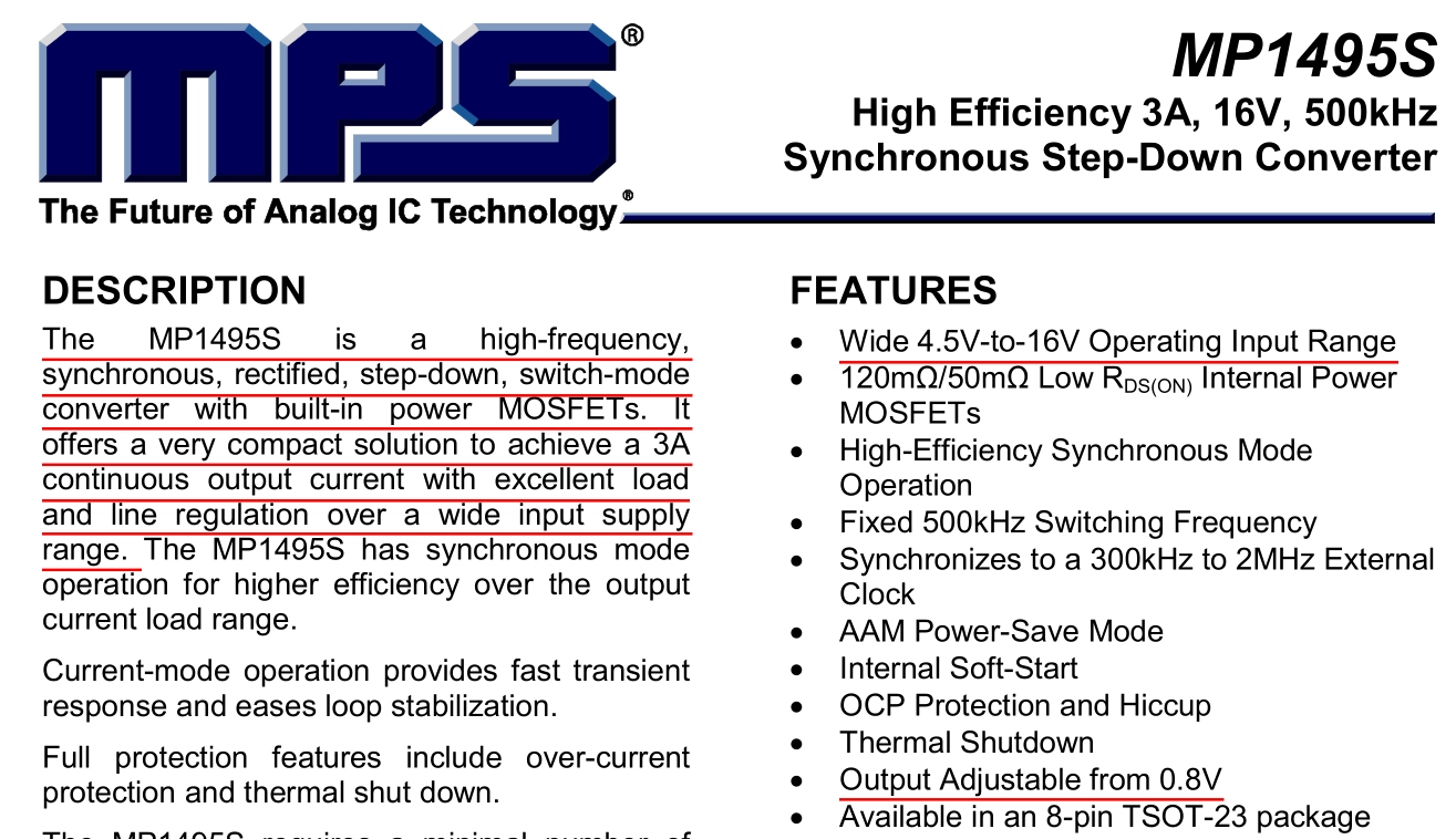| 韦东山 | MP1495S | DC-DC | 4.5V-16V | 0.8V-5V | 3A |