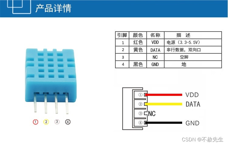 手头正好有一个DHT11的测温湿度模块,该模块采用专用的数字模块采集技术和温湿度传感技术,确保产品具有极高的可靠性与卓越的长期稳定性。传感器包括一个电阻式感湿元件和一个NTC测温元件,并与一个高性能8位单片机相连接。因此该产品具有品质卓越、超快响应、抗干扰能力强、性价比极高等优点。每个DHT11传感器都在极为精确的湿度校验室中进行校准。校准系数以程序的形式储存在OTP内存中,传感器内部在检测信号的处理过程中要调用这些校准系数。单线制串行接口,使系统集成变得简易快捷。超小的体积、极低的功耗,信号传输距离可达20米以上。关键是价格非常便宜,在某宝上不到3元就能买到,而且还包邮。