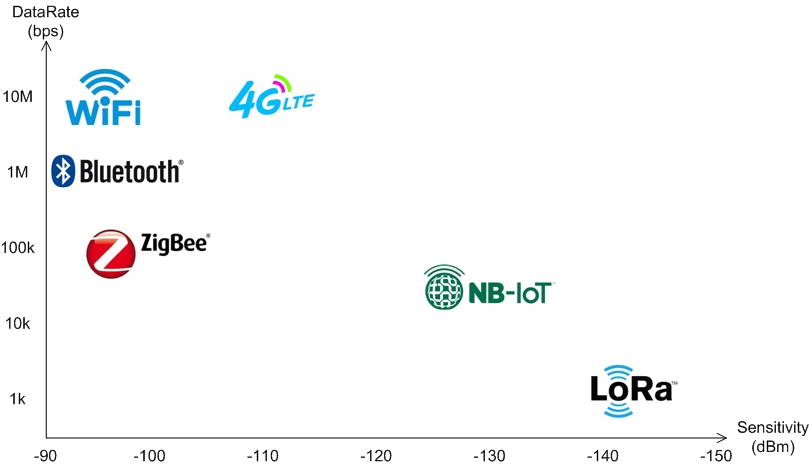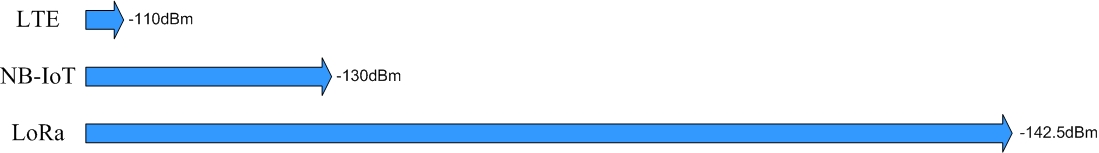 相比 NB-IoT(-130dBm)和 LTE(-110dBm),我们将知道 LoRa(-142.5dBm)的优势所在。