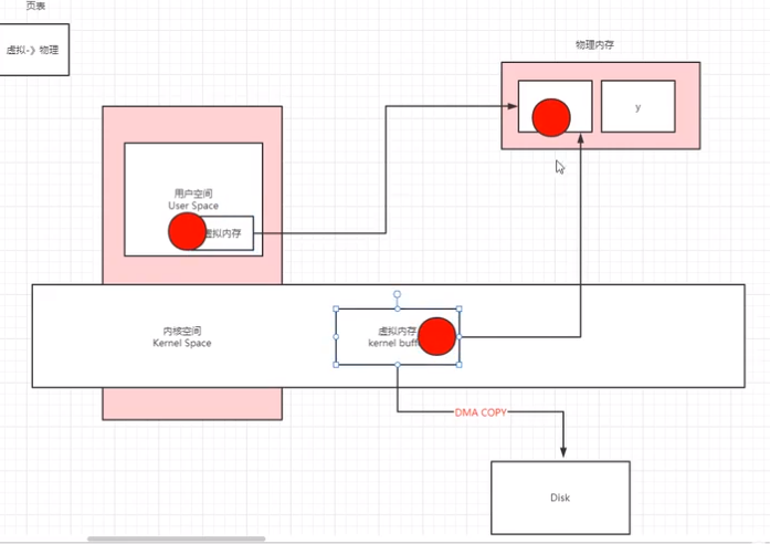 ②从内核空间写入磁盘需要DMA拷贝