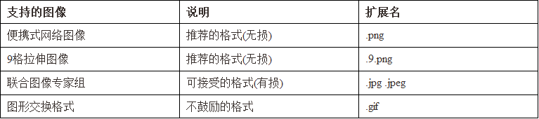 图像也是经常用到的一类资源,其格式有如下几种: