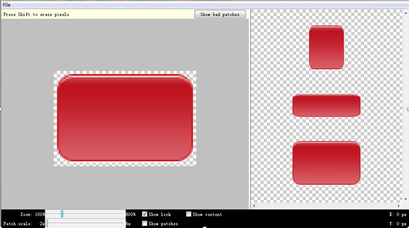 由于手机屏幕拥有各种不同的分辨率,如果能够根据不同的屏幕尺寸和方向或者不同长度的调整图像大小,那么采用9格拉伸图像将是非常方便的,而且它是一种被拉伸而不失真的图像格式。