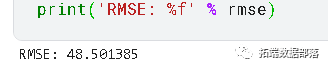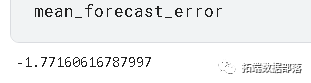 mda(Y_val, predictions)0.9090909090909091 >>> mse = mean_squared_error(Y_val, predictions) >>> rmse = sqrt(mse) >>> forecast_error >>> mean_forecast_error = np.mean(forecast_error)