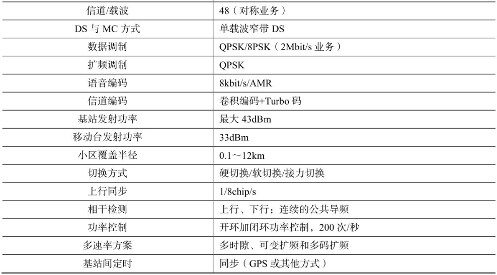 - 先进技术的采用:智能天线、多用户检测、分集接收、分层小区结构。