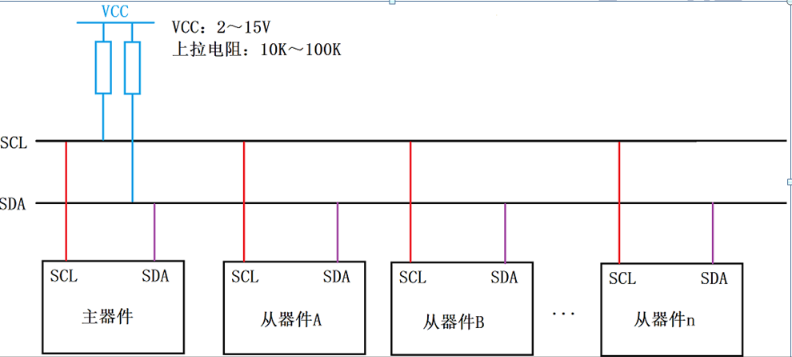| 器件寻址 | 7位(128个器件) | 7位或10位(1024个器件) | 7位或10位(1024个器件) |