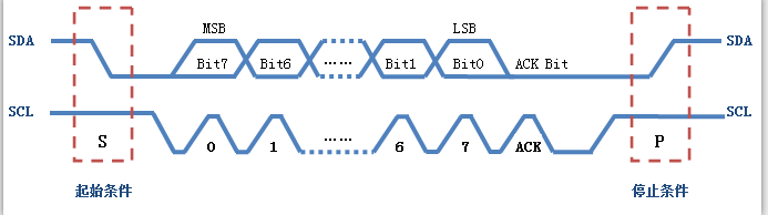 SCL在高电平期间,SDA出现一个由高到低的跳变(SDA,SCL有最小保持时间 )