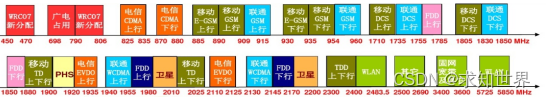 2007年,我国颁布的《中华人民共和国物权法》第五章第五十条规定“无线电频谱资源属于国家所有”,如图,这是我们国家的无线电分配图。