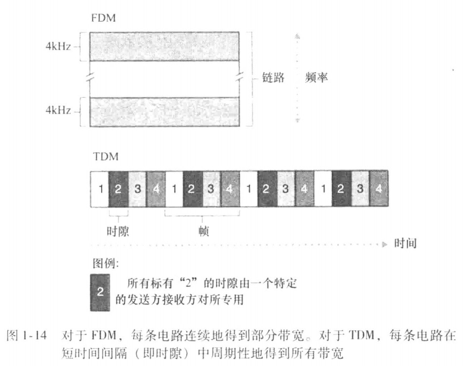 通过网络链路和交换机交换数据的两种基本方法:电路交换和分组交换。