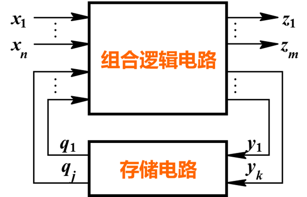 在组合电路中,任一时刻的稳定输出只取决于当时的输入,而在时序电路中任一时刻的稳定输出,不仅可能取决于当时的输入,还取决于电路的原来的状态,即与过去的输入情况有关。