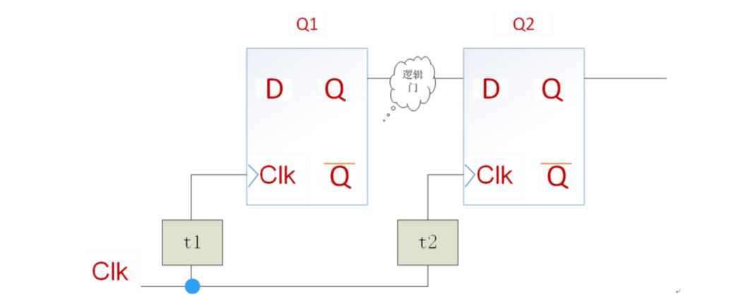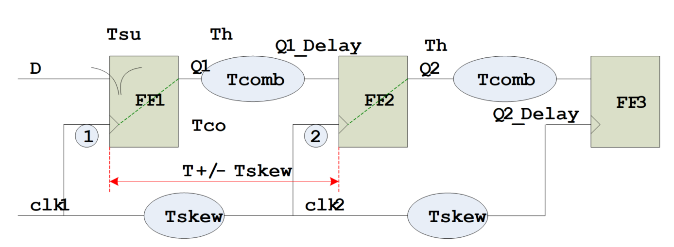 之前为了简单介绍知识点 ,未引入时钟偏移Tskew,但时间电路中是存在时间偏移的,分析时候不可忽视。