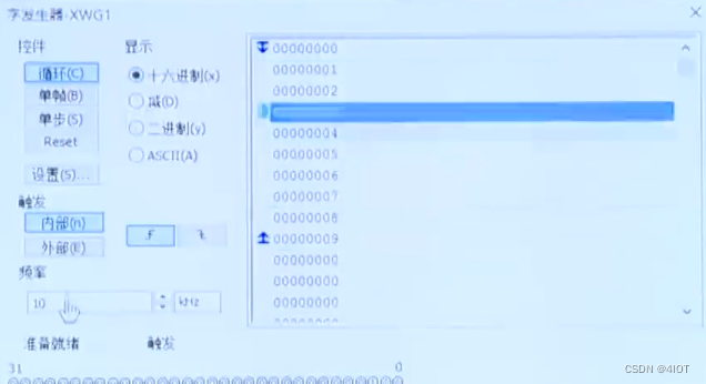 左边是自发生器,采用16进制从0000000-00000009滚动发射。led不停轮回显示。