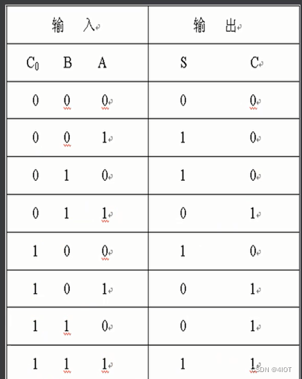 C代表进位,当010、100、001、000的时候,C是0,当需要进位的时候C输出1