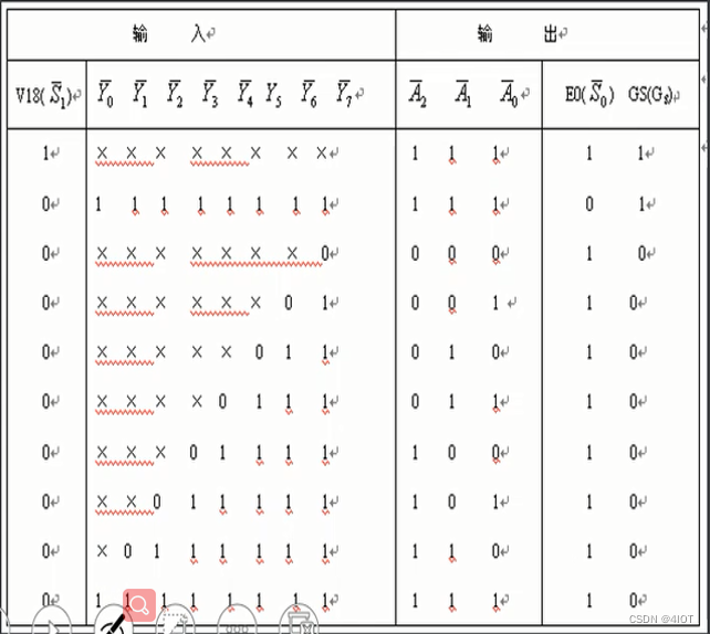 设计优先编码器时已经将所有的输入信号按优先顺序权最高的一个进行编码。图中当S1信号使能的时候,输出均是1。当Y0-Y7信号输入1的时候,扩展编码输出1.。其余按顺序,输出000-111。