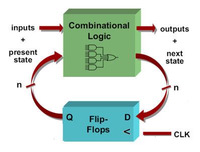 与组合逻辑电路不同,时序逻辑电路的输出不仅与当前的输入有关,还与电路原来的状态有关,有组合逻辑和存储电路、或仅由存储电路组成。