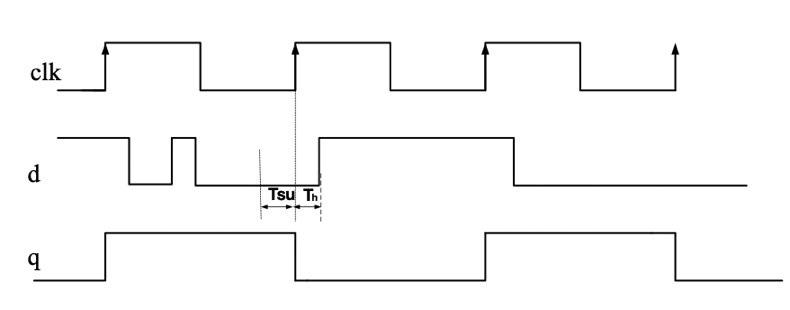 触发器要正常工作必须满足两个重要参数:建立时间tsu和保持时间th。建立时间tsu是输入数据被锁存到触发器之前必须保持稳定不变的最小时间,保持时间th是指有效时钟沿到来之后,输入数据必须保持稳定不变的最小时间。如果不满足这两个参数,触发器就不能被正确置位,电路就不能正常工作。