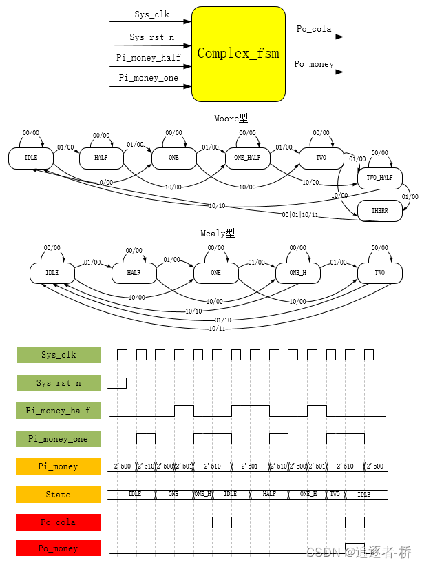 《数字电子技术基础》6.4 时序逻辑电路——设计方法(FSM)有限状态机_追逐者-桥的博客-CSDN博客时序逻辑电路设计——有限状态机(FSM)https://blog.csdn.net/ARM_qiao/article/details/124461906状态机(FSM),也称为同步有限状态机,Mealy型、Moore型状态机(输出与输入无关)