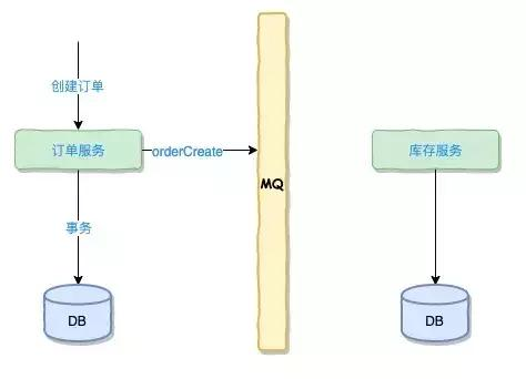 订单创建完成后,发布一个事件“orderCreate” 到消息队列中,然后由MQ转发给订阅该消息的服务,因为是基于消息事务,我们可以认为订阅该消息的商品模块是百分百能收到这个消息的。