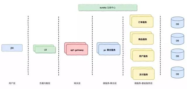 图中的 “pc聚合服务” 也是一个微服务,只不过它是属于聚合服务中间层,我们将为微服务进行逻辑划分,分为2个层: