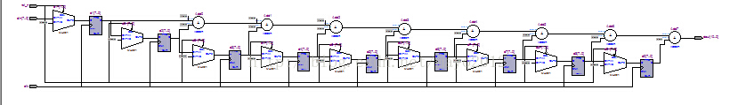 于是当时就把这个加法改了下:q0与(q1<<1)相加后,结果通过寄存器缓存一拍。类似的q3与q4,q5与q6,q7与q8,好吧q9落单了,但也只能乖乖的自己打入寄存器缓存一拍。