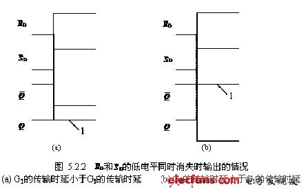 同时从0转变到1时,输出端的情况。假设G1的传输时延小于G2的传输时延,在