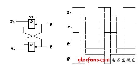,为触发器的0状态。触发器处与1状态或0状态时输出端都有互补性。下面具体分析两个输入端对输出端的影响情况。