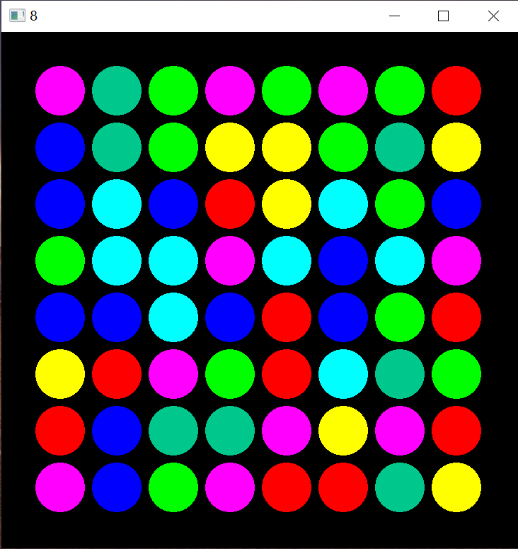 for(int j=1;j<=8;j++) //match=1的积木,变更为新积木,坐标位置放到棋盘外。新积木实际行、列(row,col)未变,通过上面dx,dy移动到(row*54,col*54)处。