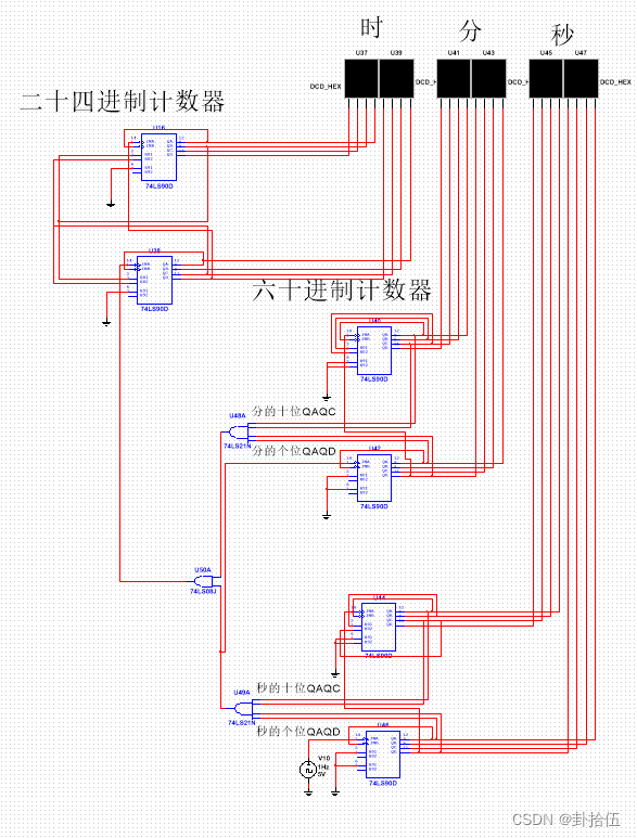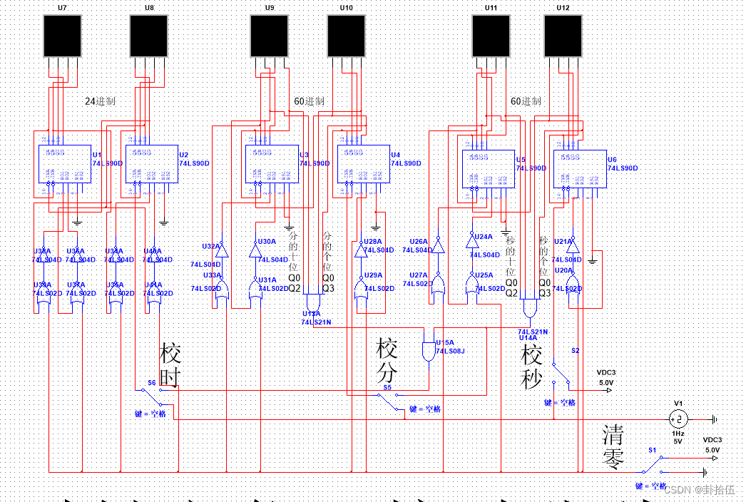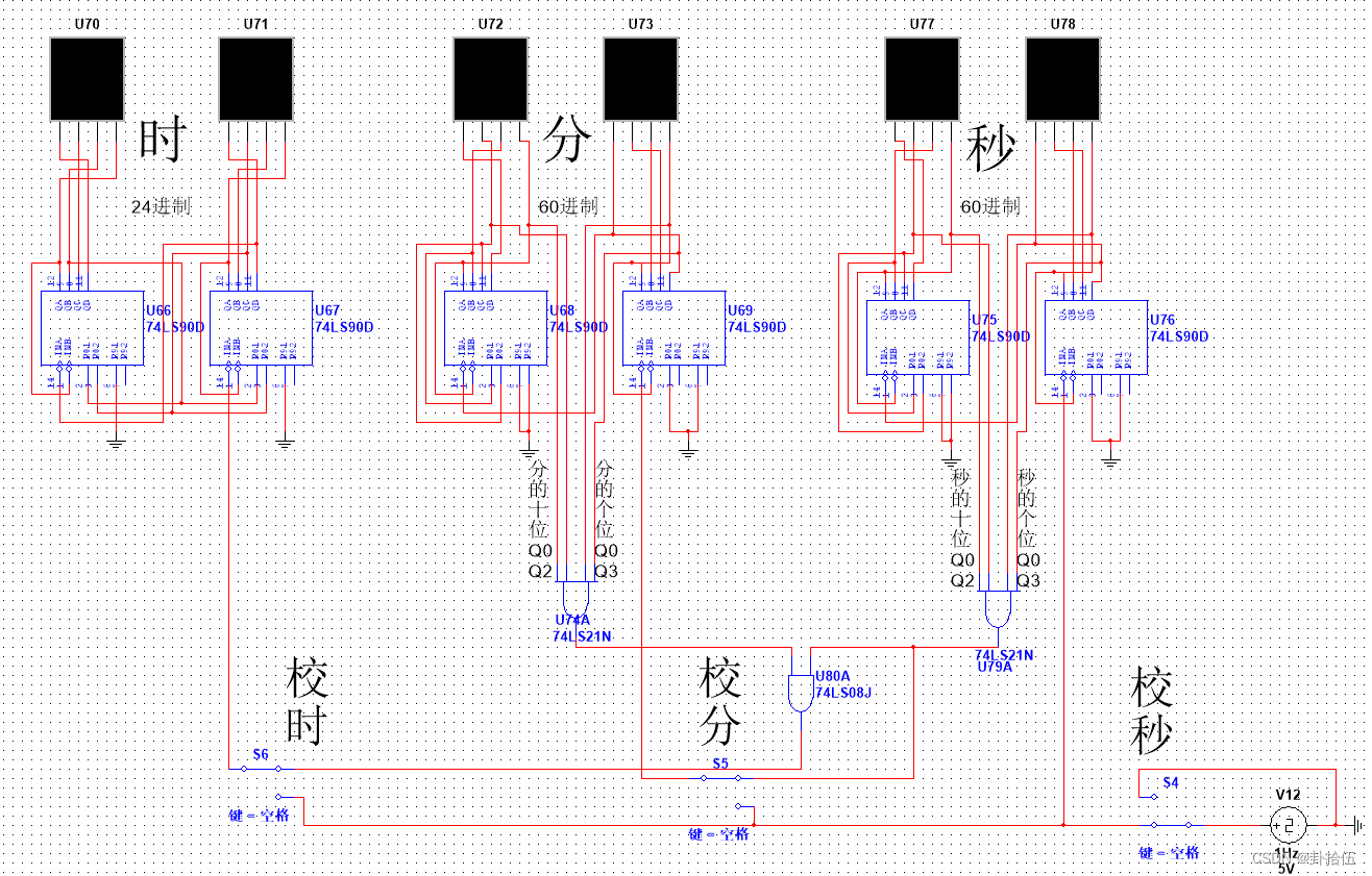 以上就是瘦瘦台灯最近收集整理的关于数字电子基础课程设计——基于74LS90的电子时钟,可实现校准时分秒以及清零课设内容74LS90异步计数器74LS90功能表十进制计数器 六进制计数器 秒与分的实现——60进制 向分钟进位 计时电路——24进制 向时进位实现校时功能实现清零功能的全部内容,更多相关数字电子基础课程设计——基于74LS90内容请搜索靠谱客的其他文章。