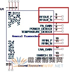 图2-2 收发器的射频输入与输出管脚