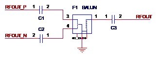方法一,使用平衡器。原本相位相差180°的差分信号经过平衡器(Balun,俗称巴伦),就可以得到合二为一的单端射频信号。如图2-5所示,图中的F1就是一个平衡器,差分信号RFOUT_P和RFOUT_N经过F1得到单端信号RF_OUT。