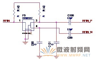 其实大家也一定想到了,收发器接收信号和收发器发送信号差不多就是互为逆过程,因此电路的结构也差不多是相反的。没错,看了下面的实际电路图就知道了。 先来介绍使用平衡器的方案。在某实际案例中,采用了如图2-8所示的平衡器电路。单端信号RF_IN经过平衡器F5后得到差分的射频信号RFIN_P和RFIN_N。