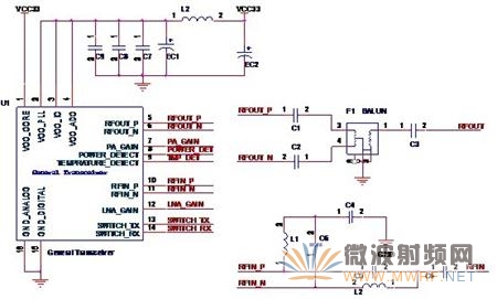 图2-11 完整设计的无线收发器外围电路