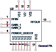 功放芯片属于微波功率器件的范畴,图3-2给出了一个典型的功放芯片的原理图符号,包括以下管脚:
