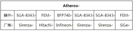 表3-1 Atheros的设计中采用的功放芯片