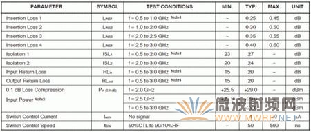 有一个比较奇怪的现象时我们很少看到在Datasheet中提到切换速度这样的参数。在绝大多数设计中,几乎无一例外的使用了NEC公司的uPG2179作为切换芯片(Switch),其典型参数如图5-2 所示。