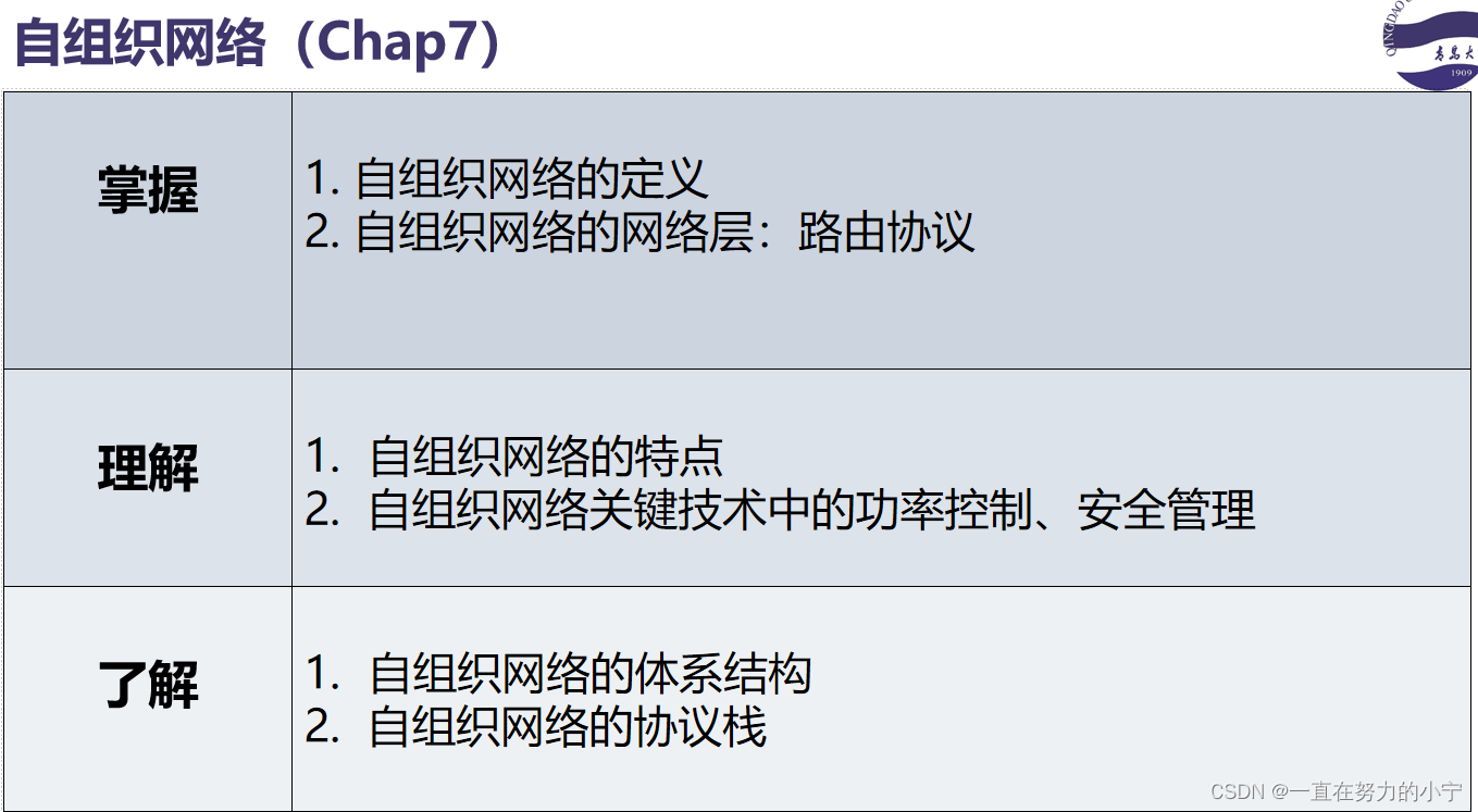 以上就是灵巧水蜜桃最近收集整理的关于物联网通信技术第7章 自组织网络(非常全,持续更新)知识点要求7.1自组织网络概述7.2 自组织网络的体系结构(了解)7.3自组织网络关键技术7.4 自组织网络中的链路自适应技术7.5无线抗衰落和抗干扰技术7.6自组织网络的MAC层7.7自组织网络的网络层的全部内容,更多相关物联网通信技术第7章内容请搜索靠谱客的其他文章。