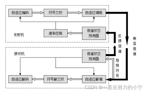 自适应编码和调制根据信道的情况确定当前信道的容量,根据容量确定合适的编码调制方式等,以便最大限度地发送信息,实现比较高的速率。