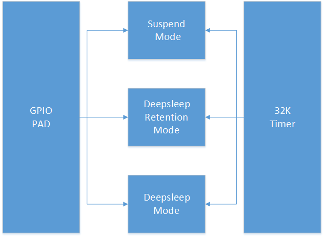 如果需要省功耗需要进入低功耗模式。低功耗模式(low power mode)又称 sleep mode,包括 3 种:suspend mode、