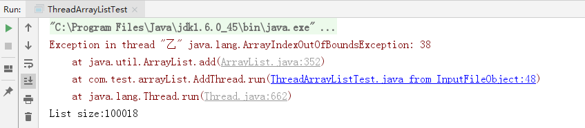 (3)程序不抛出异常,但是ArrayList集合大小小于200000个,如图: