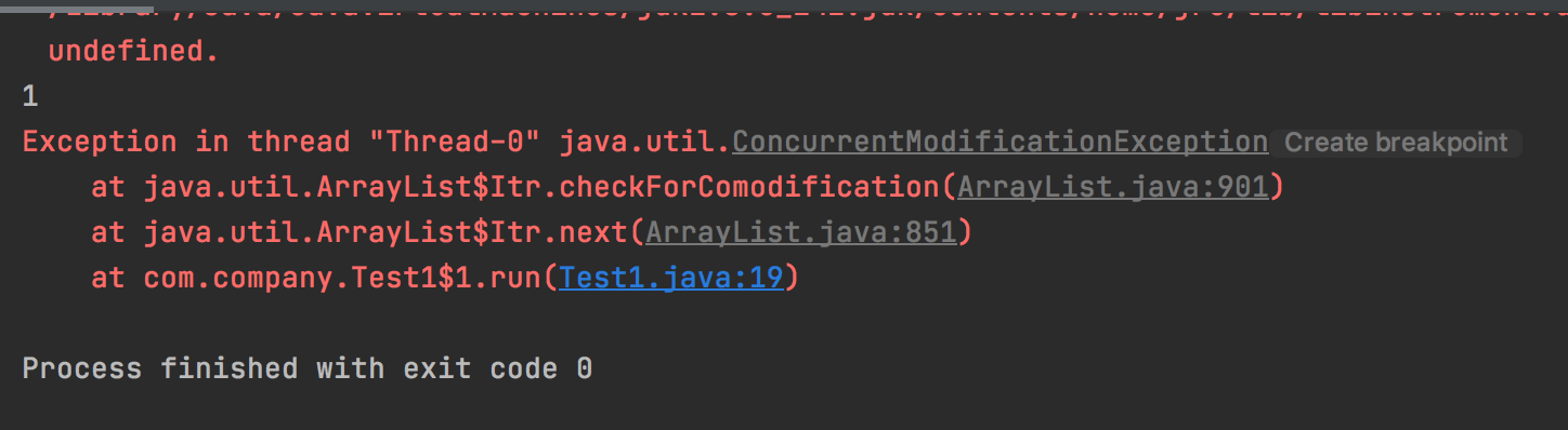 有可能有朋友说ArrayList是非线程安全的容器,换成Vector就没问题了,实际上换成Vector还是会出现这种错误。