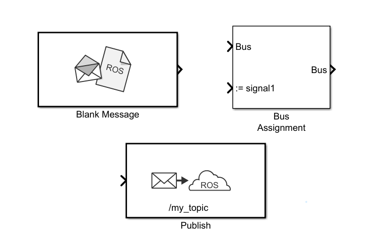 Publish模块用于向ROS网络发送消息。它的输入需要接一个一个ROS消息(总线信号)。该信号一般由Bus Assignment模块提供