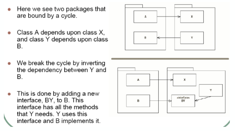 - 无环依赖原则(ADP):在包的依赖关系图中不能存在环。
