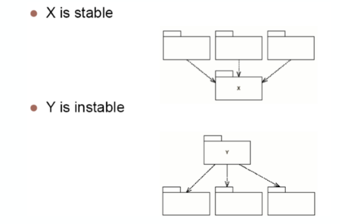 - 稳定依赖原则(SDP):朝着稳定的方向进行依赖