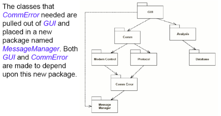 - 根据常见重用对类进行分组:避免给用户不必要的依赖